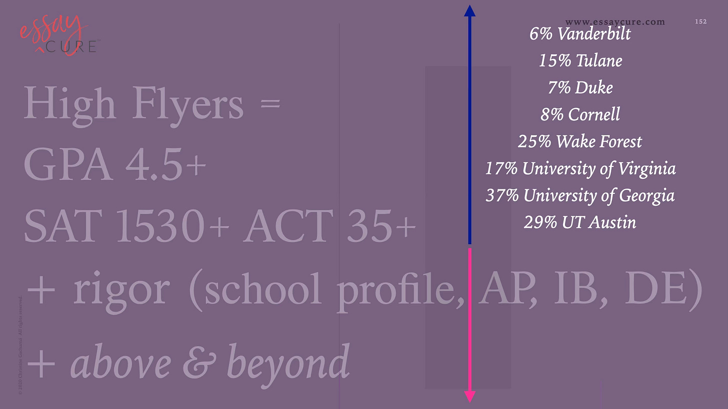 It's not just top grades and rigor that make students a High Flyer, it's the beyond interesting extracurriculars and how these students compare to the larger pool of applicants at highly selective schools.