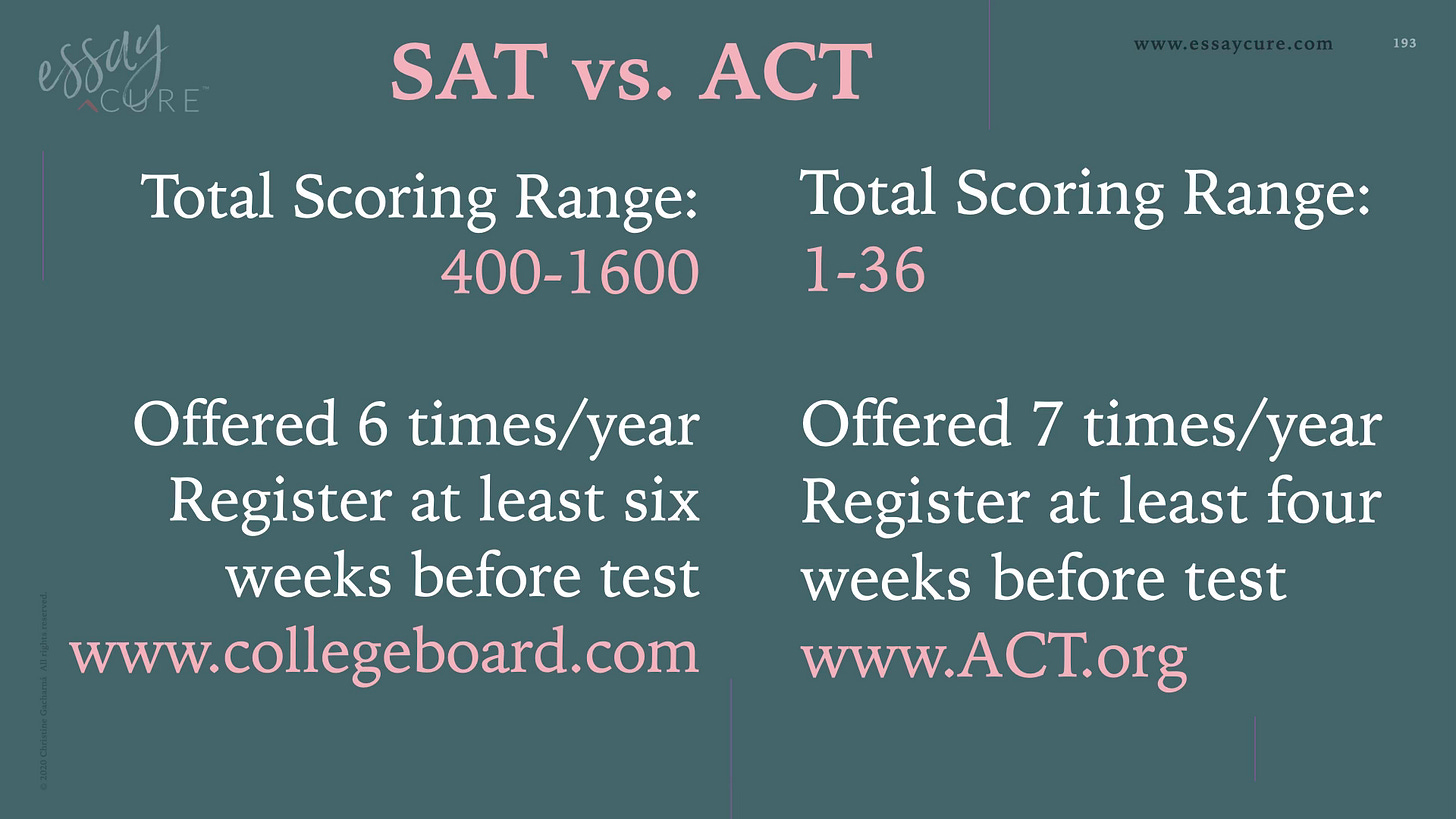 There are slight differences in the time that it takes for these exams and differences in scoring. Parents and students will want to look up when these exams are offered, and get registered for them early.
