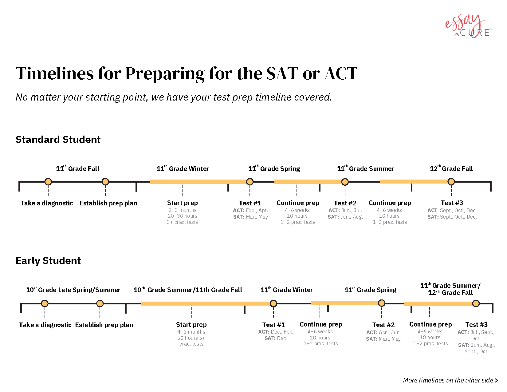 I would recommend that the student take a practice test or take the test for the first time in their junior year, and then schedule the second test after they’ve had some time to study the sections where they didn’t do as well. Students may want to spend time in independent study, an online course, or getting some extra help from a tutor before retaking the exam.