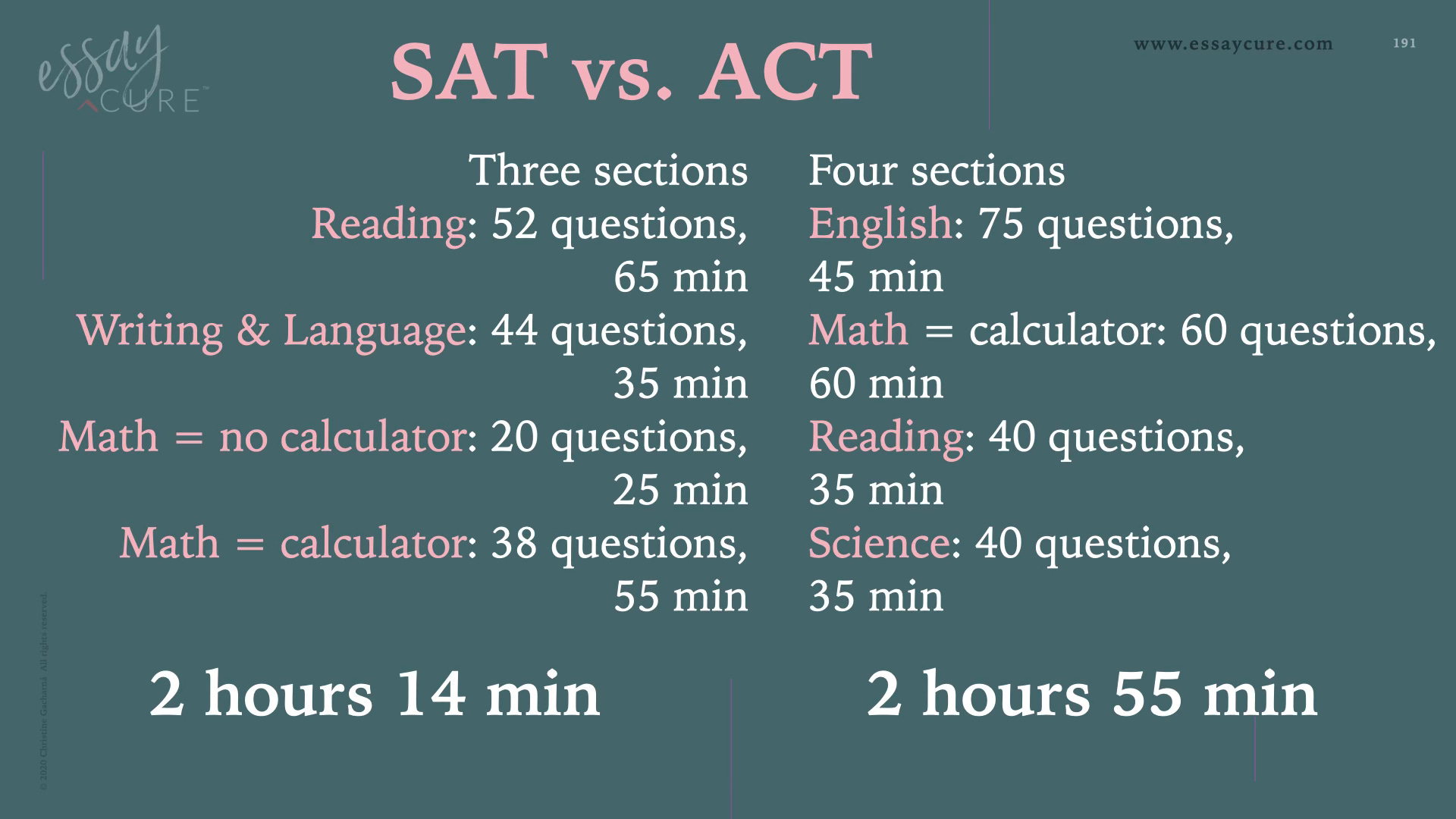 Whether or not you take the SAT or the ACT depends on a lot of things.